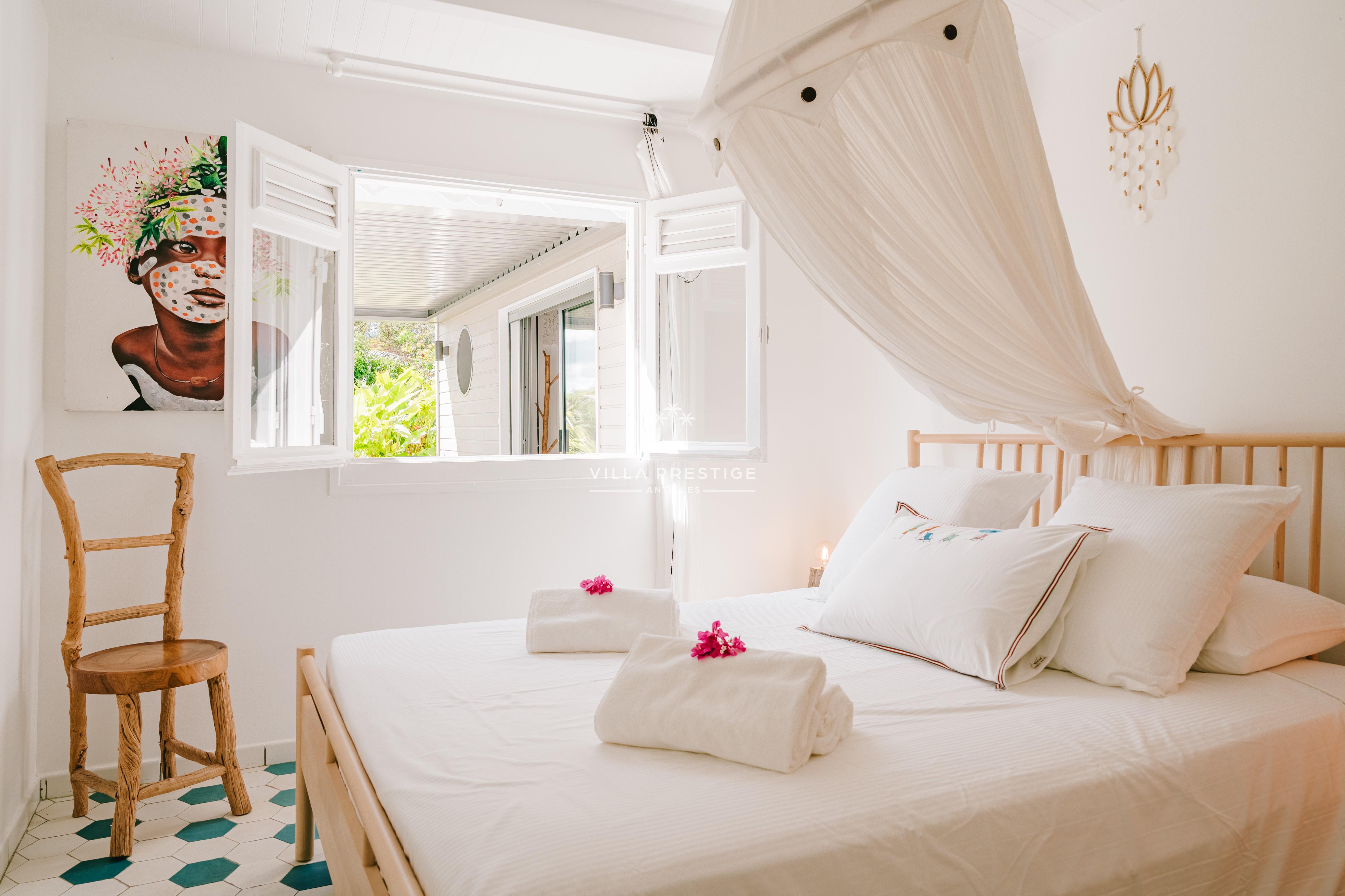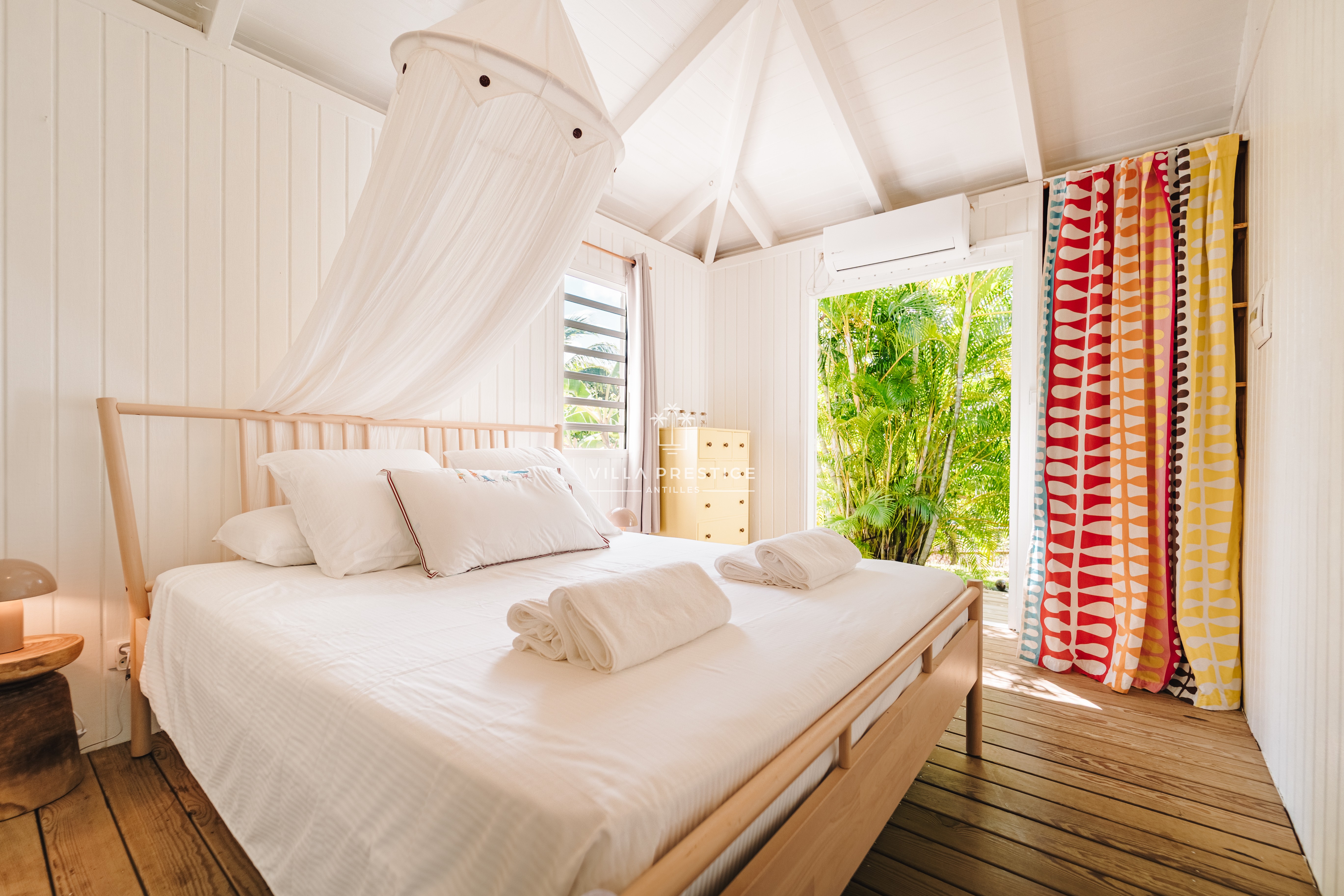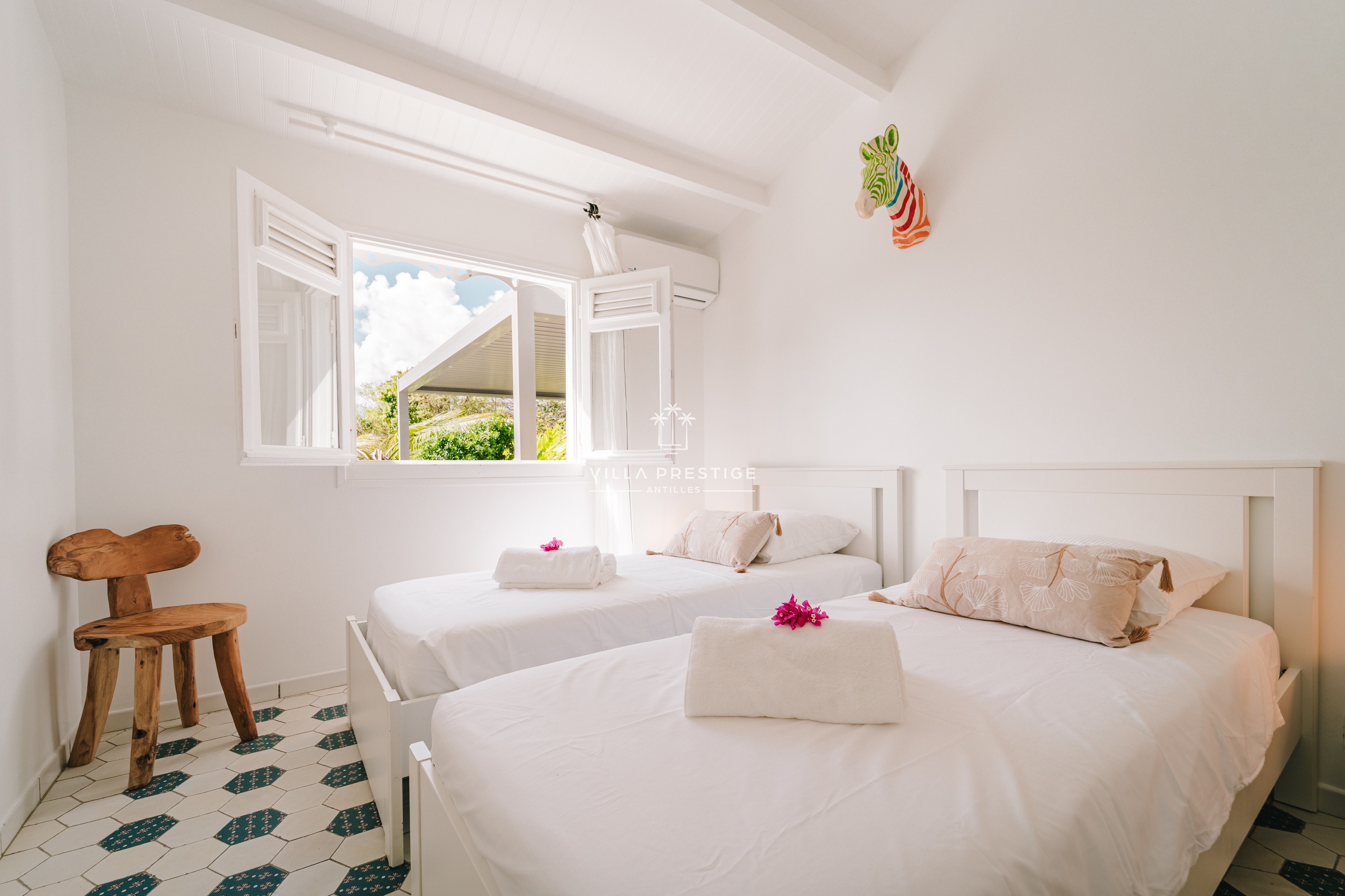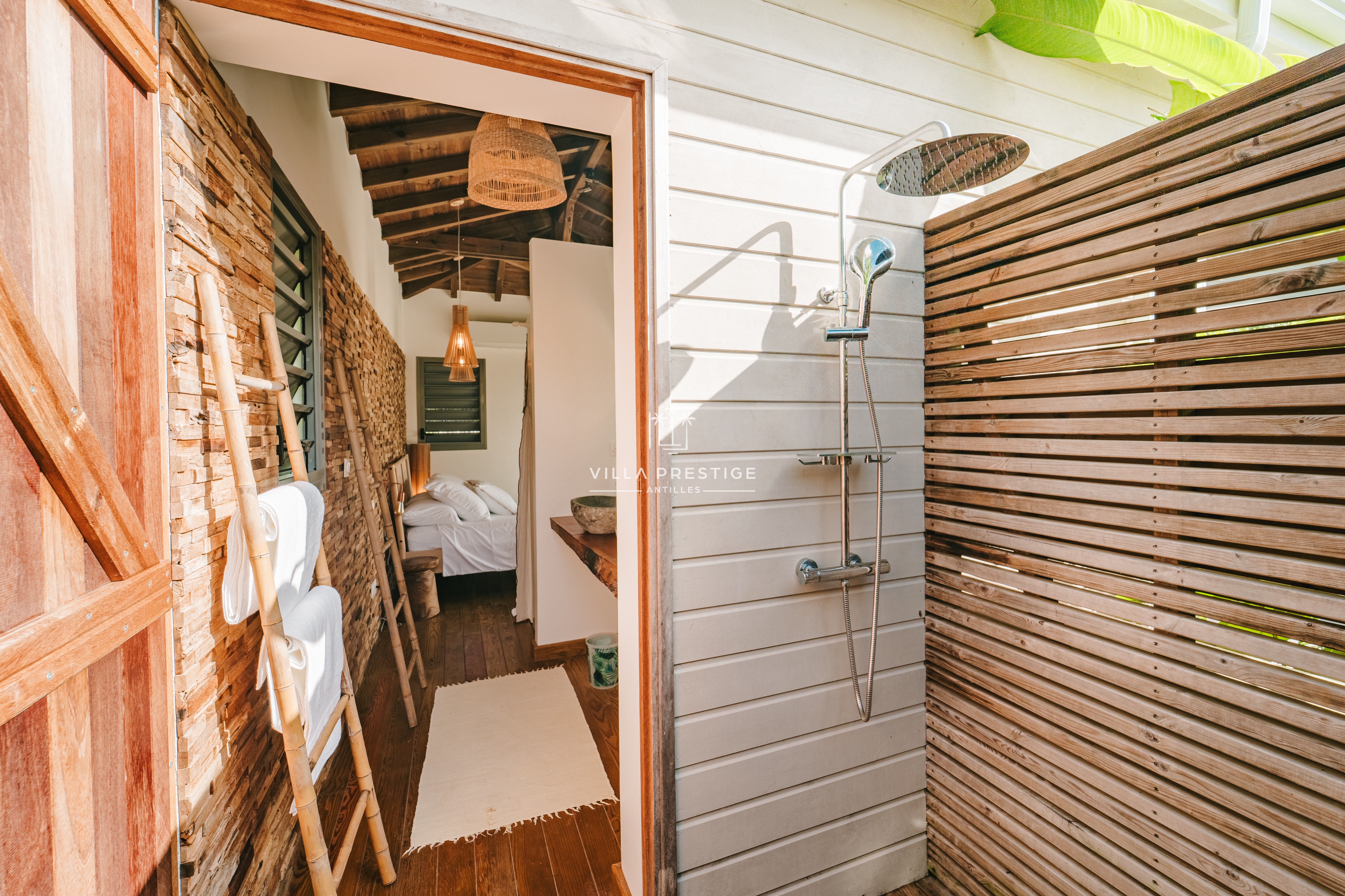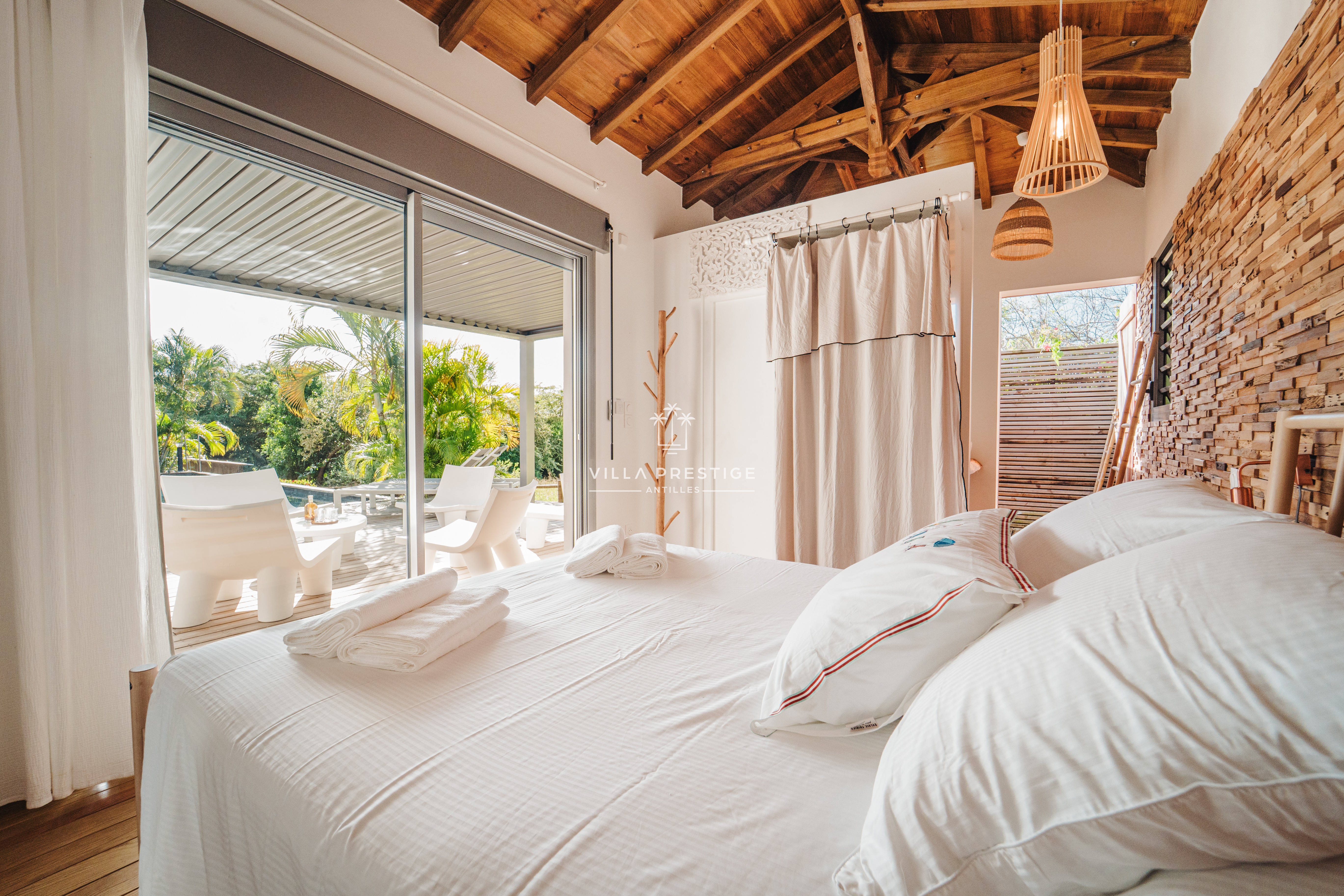 Conçue pour accueillir jusqu’à 12 personnes, Désir des Îles allie confort, convivialité et style caribéen. La villa dispose de 6 chambres climatisées, chacune pensée pour votre bien-être, réparties entre la maison principale et deux bungalows en bois.