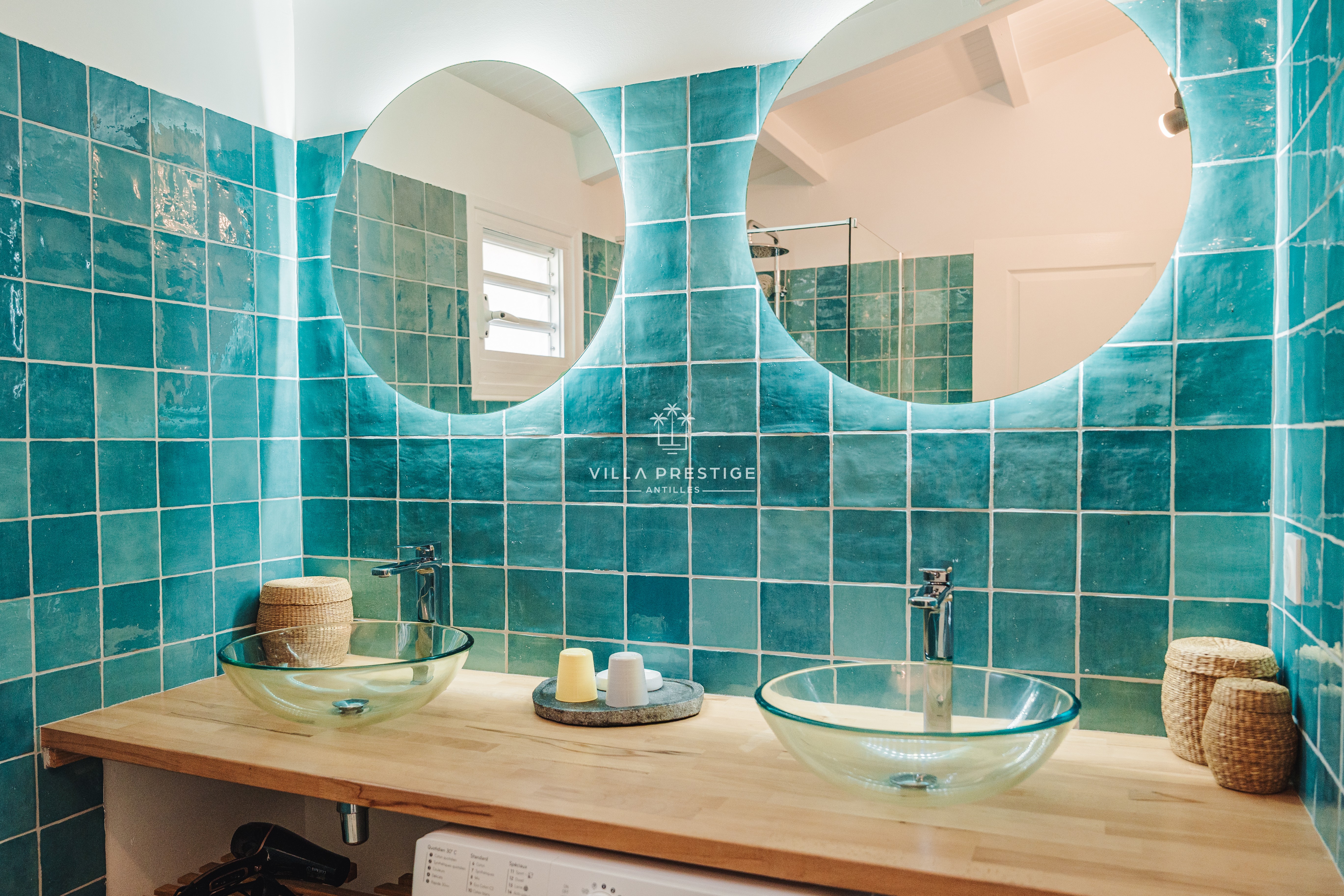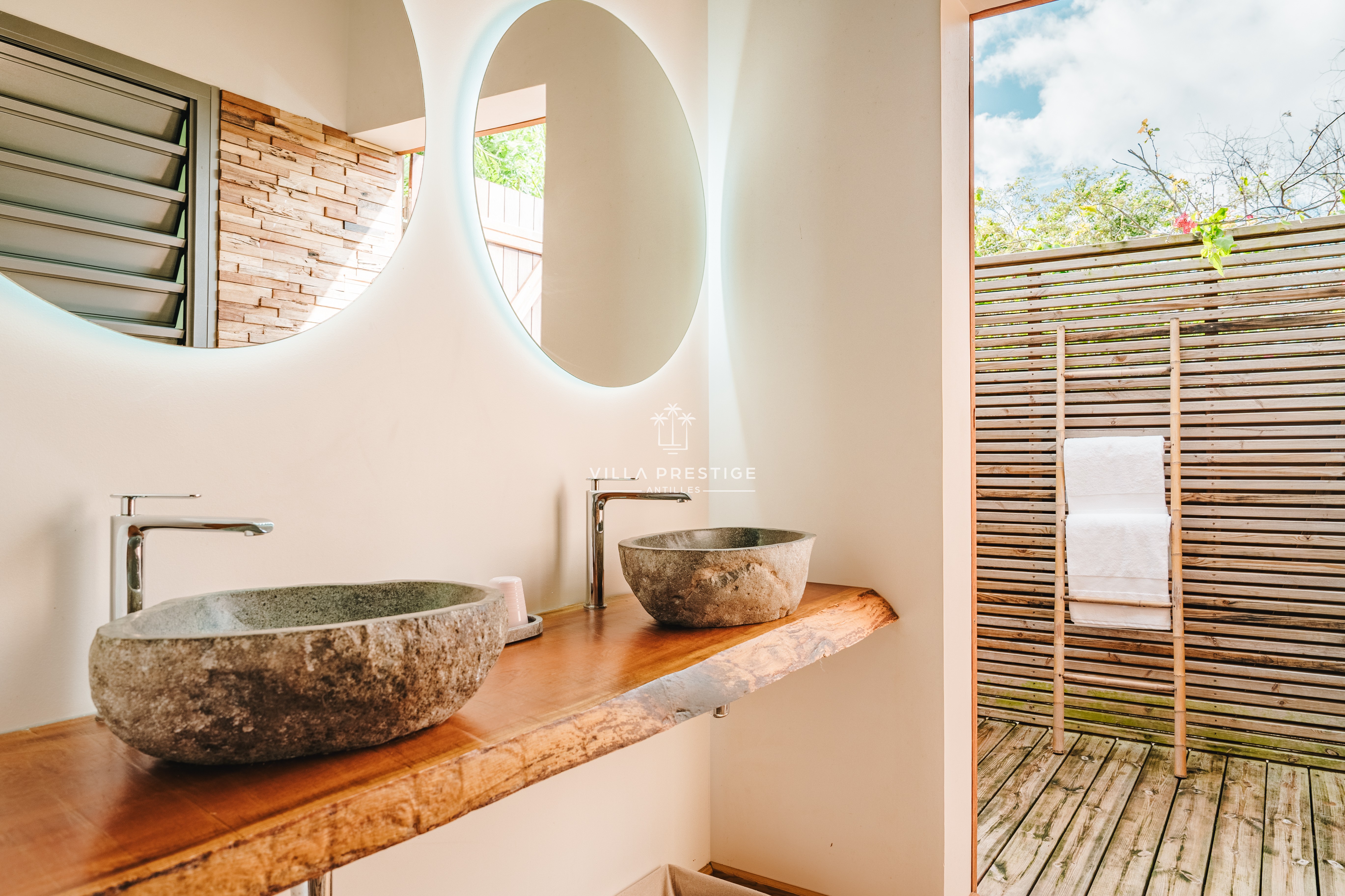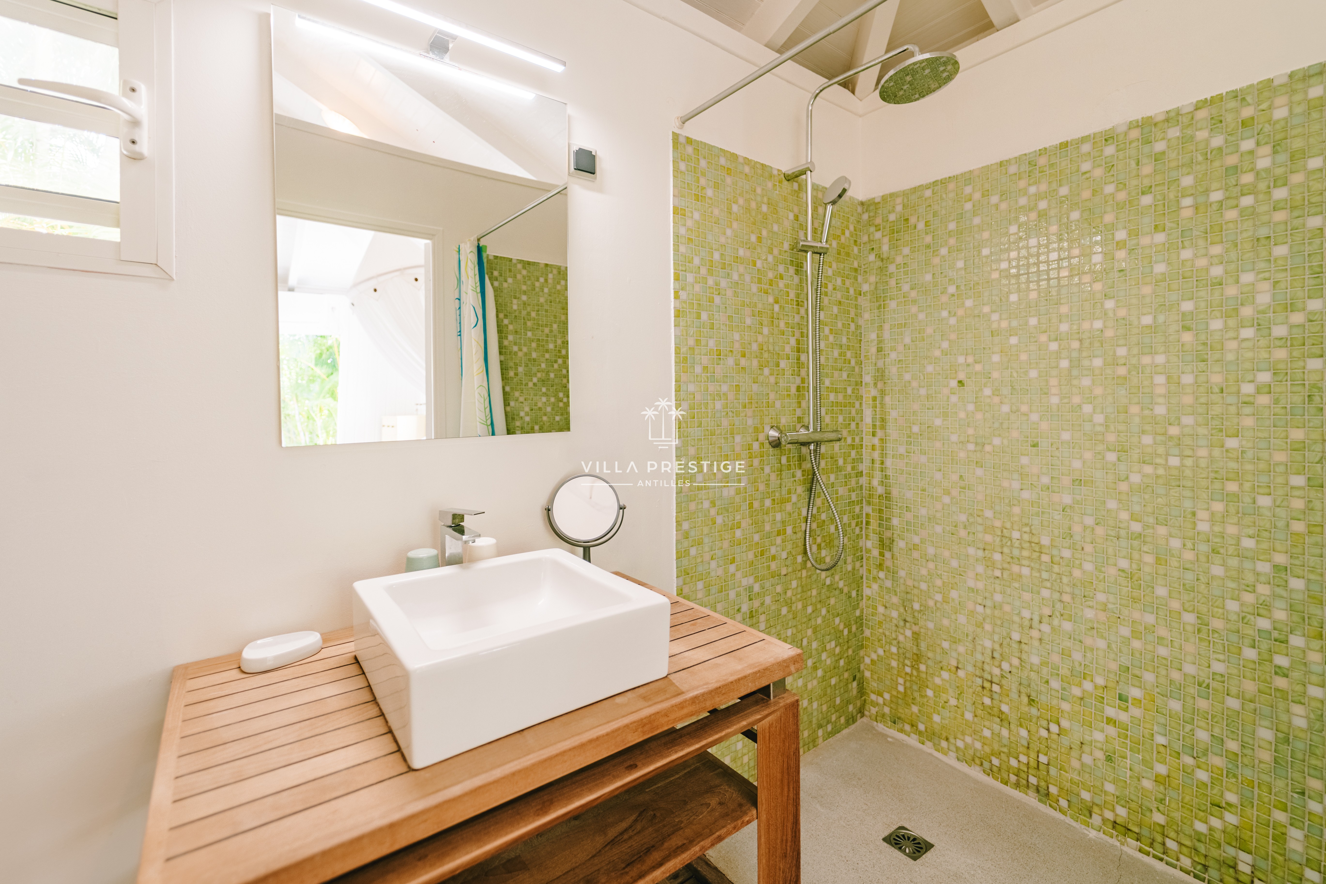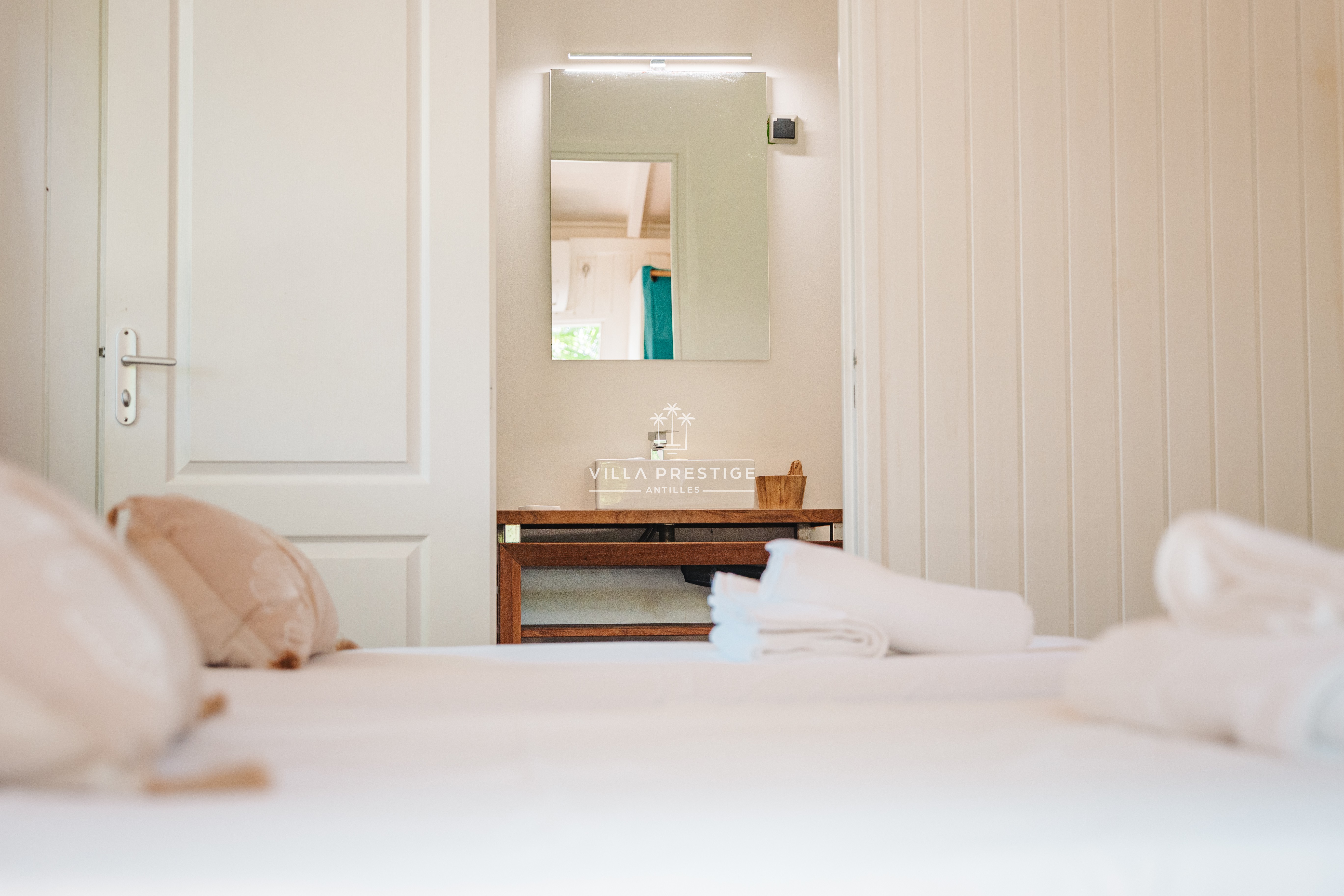 Conçue pour accueillir jusqu’à 12 personnes, Désir des Îles allie confort, convivialité et style caribéen. La villa dispose de 6 chambres climatisées, chacune pensée pour votre bien-être, réparties entre la maison principale et deux bungalows en bois.
