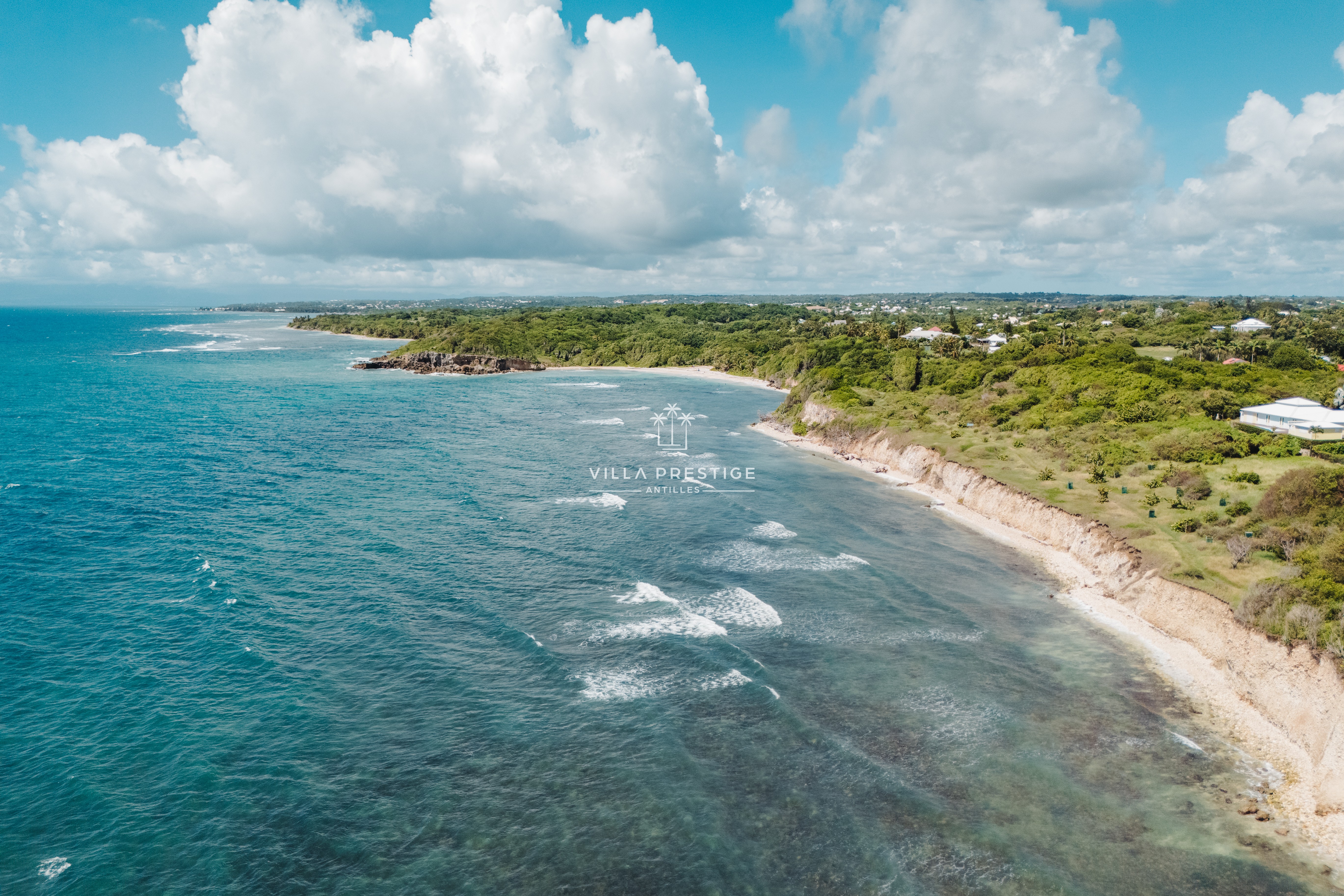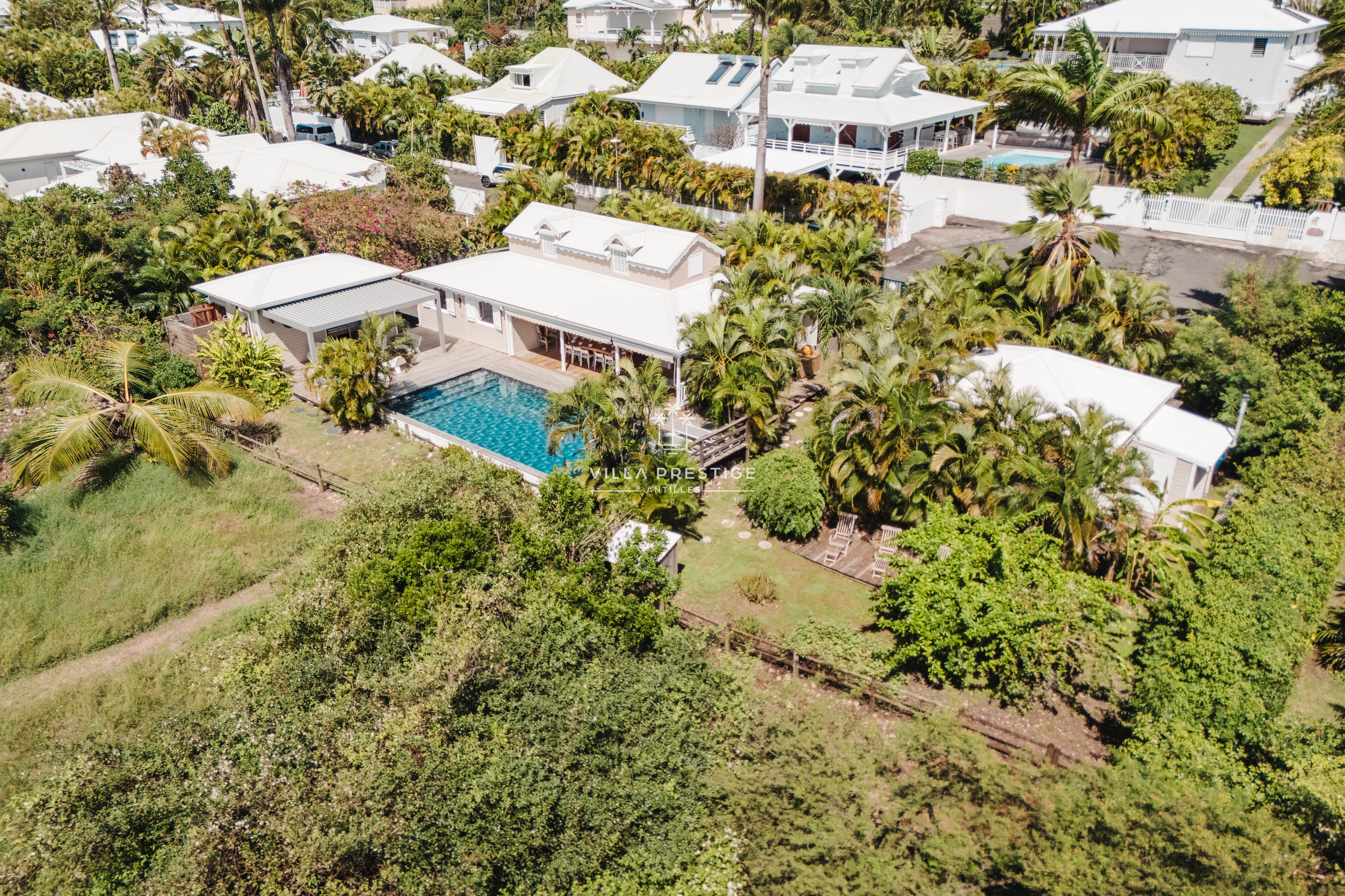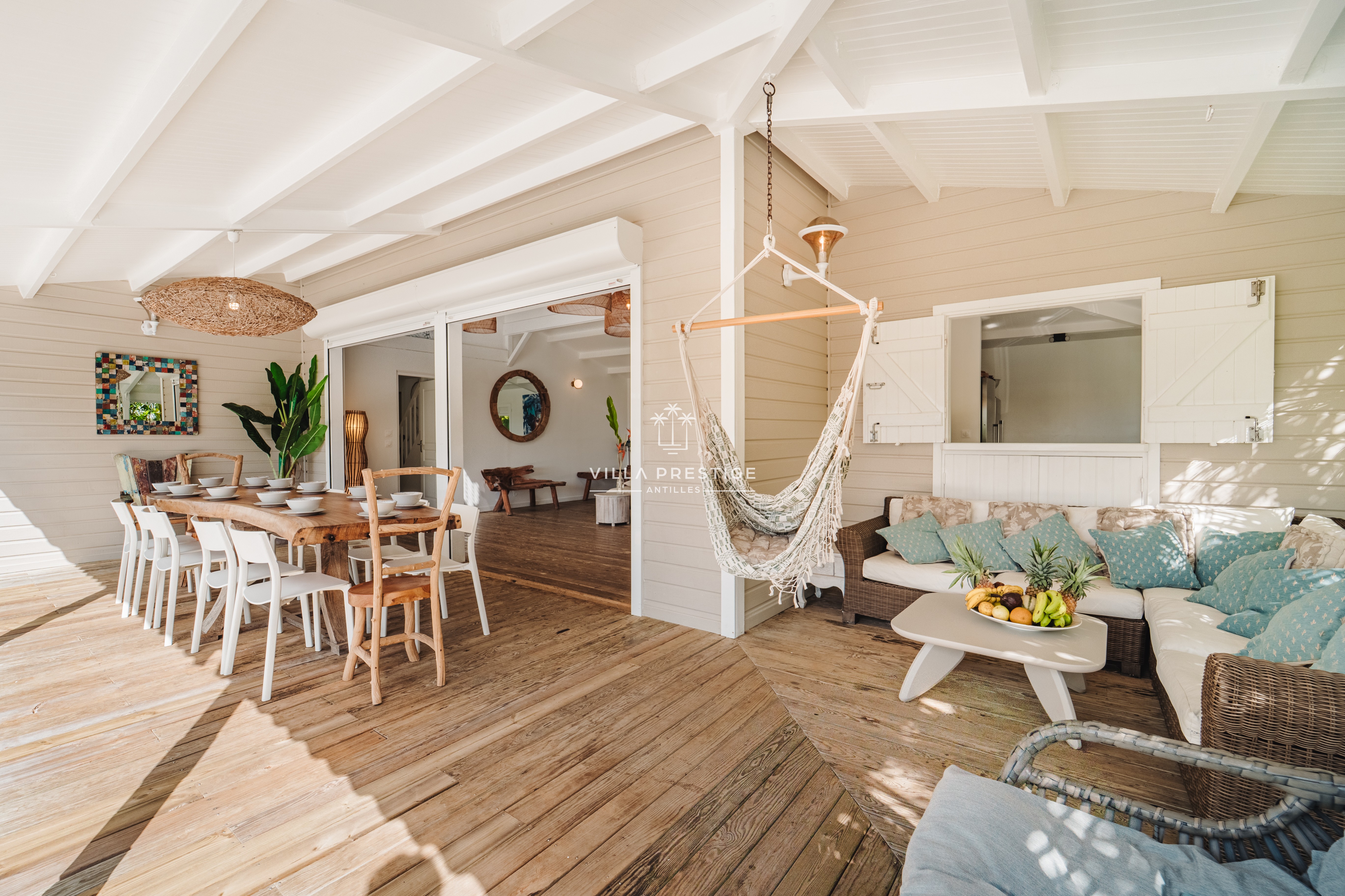 Idéalement située dans le quartier calme et recherché du Helleux, cette villa spacieuse et chaleureuse offre une vue mer et un cadre tropical unique, à seulement quelques minutes à pied des plages de Pierre & Vacances, du spot de surf du Helleux et proche de Bois Jolan.