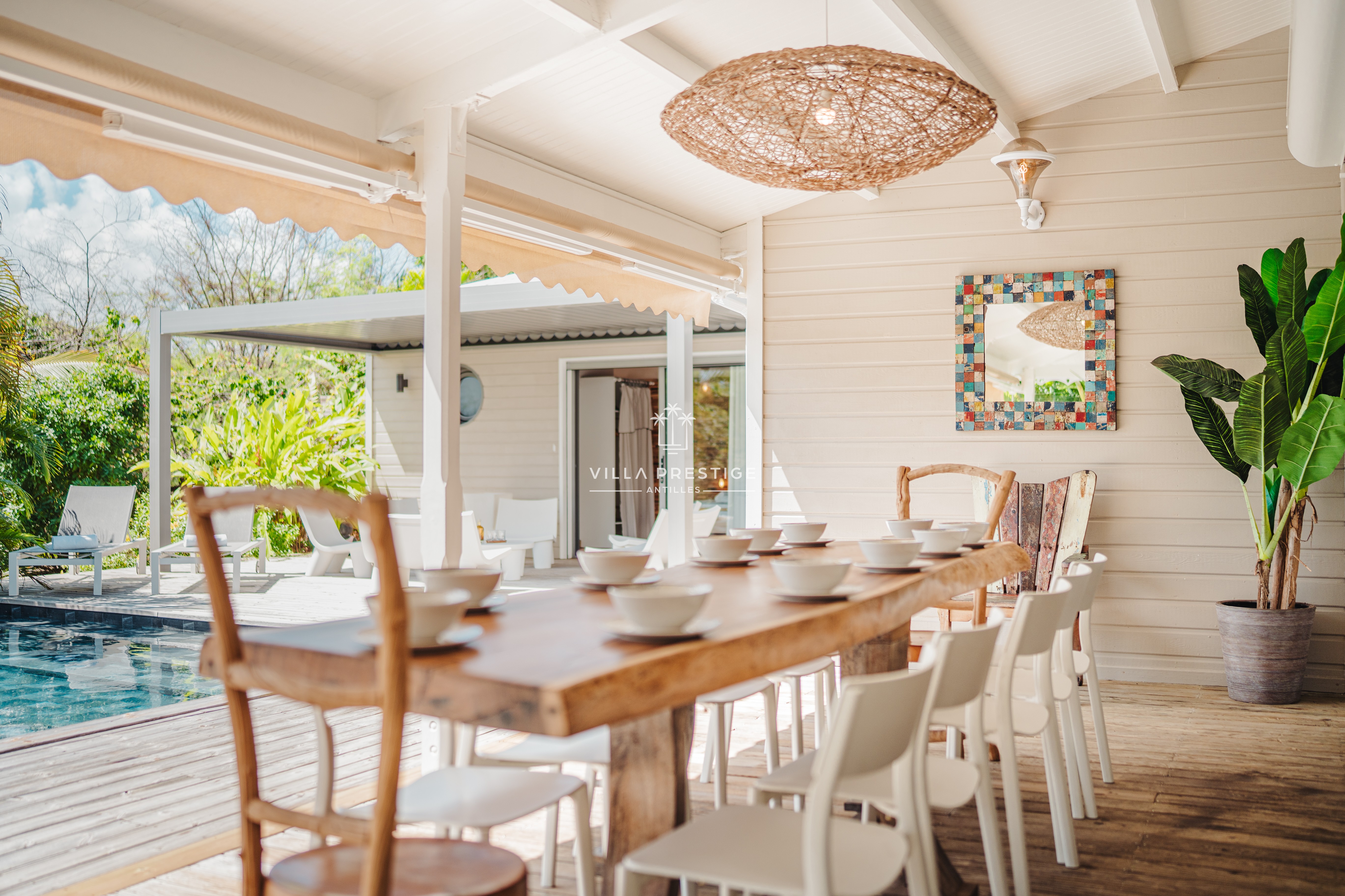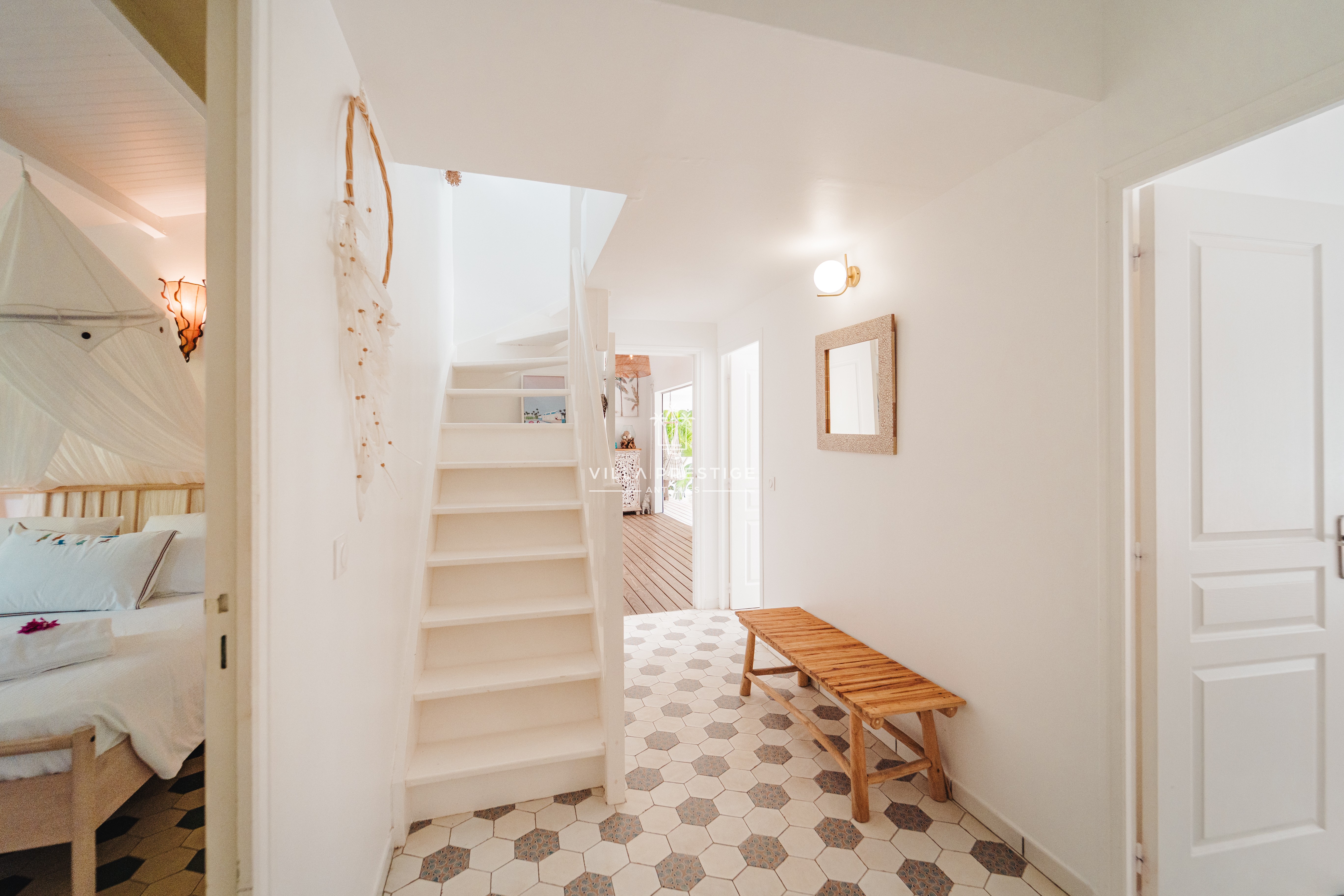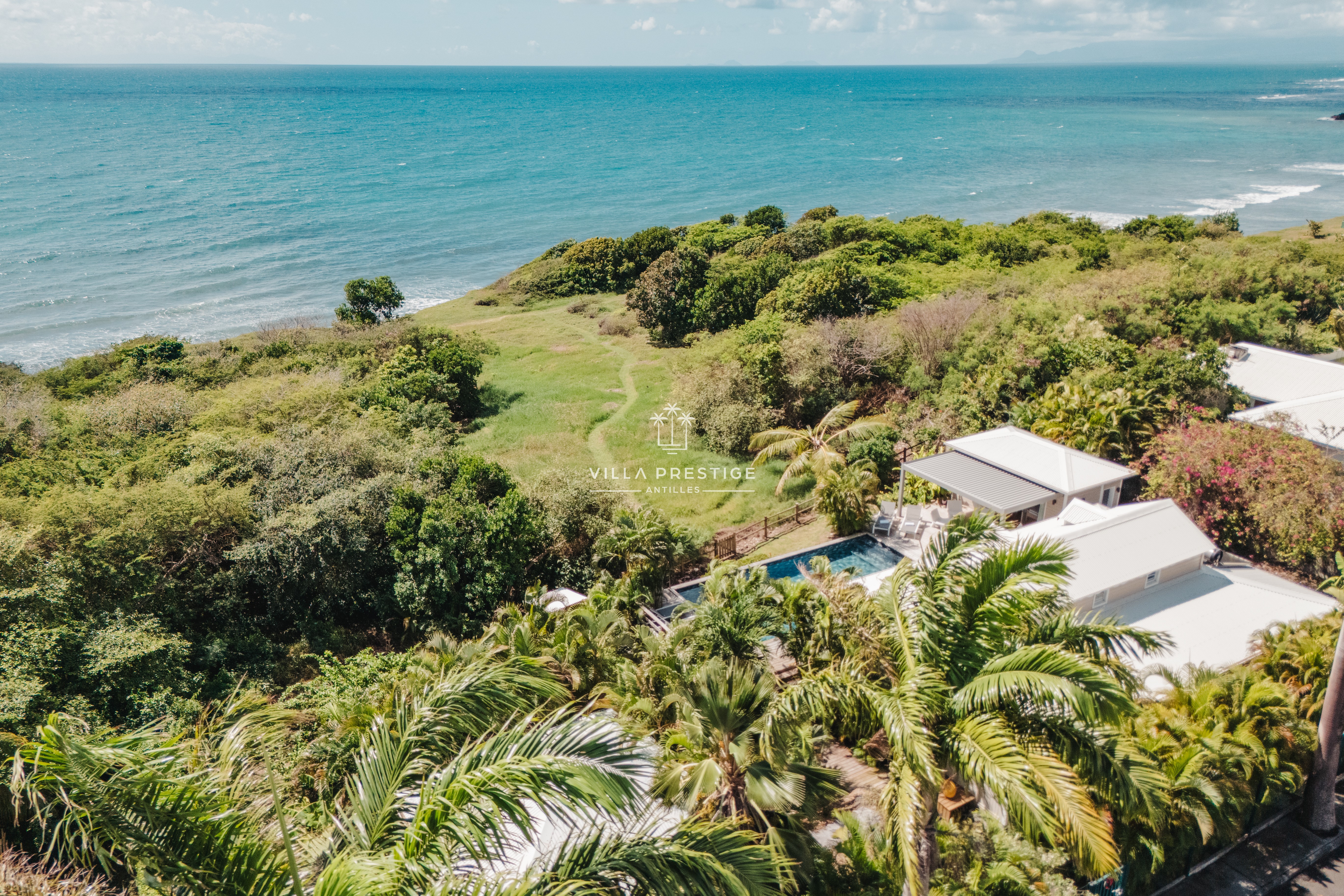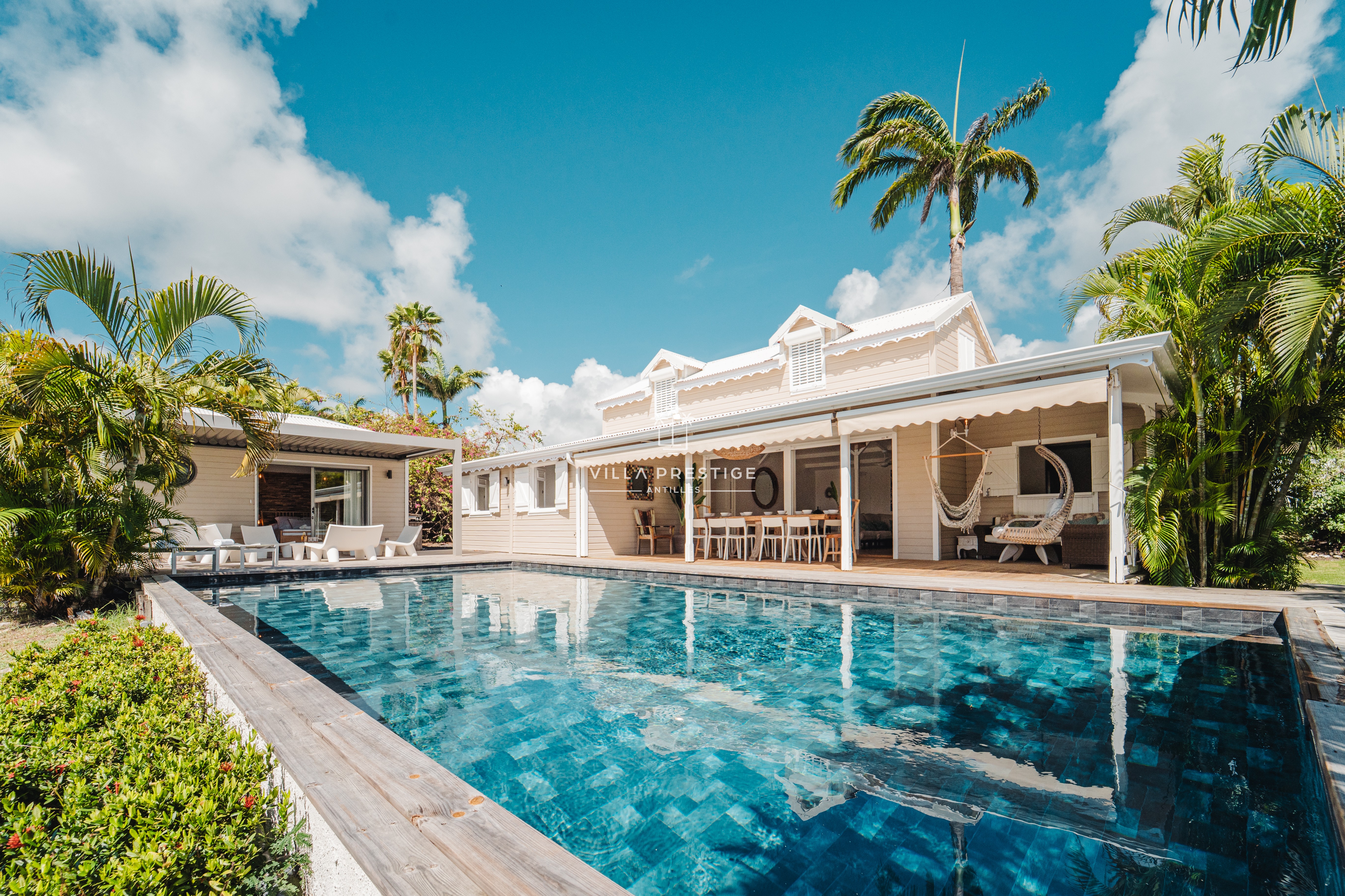 Idéalement située dans le quartier calme et recherché du Helleux, cette villa spacieuse et chaleureuse offre une vue mer et un cadre tropical unique, à seulement quelques minutes à pied des plages de Pierre & Vacances, du spot de surf du Helleux et proche de Bois Jolan.